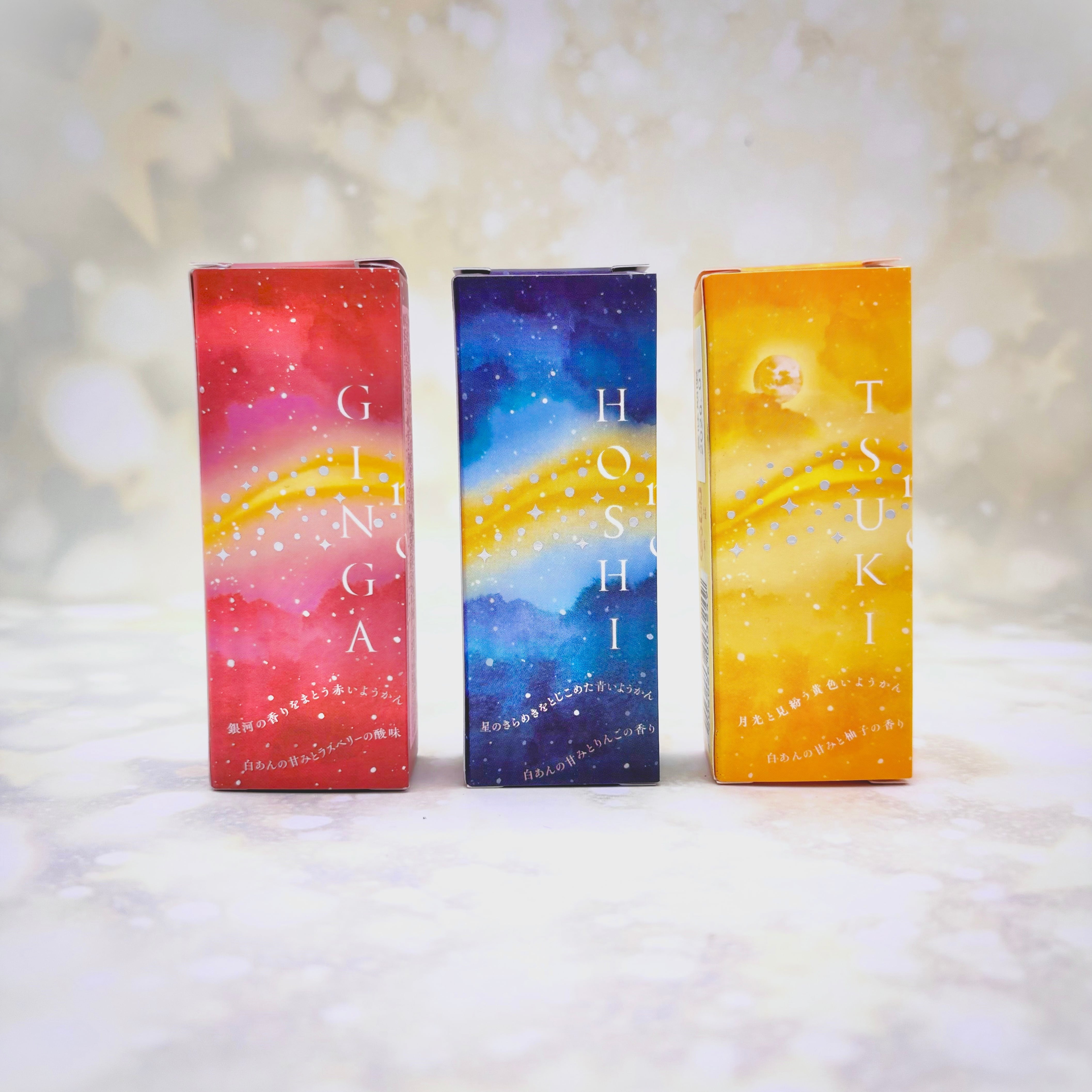 『GINGA no YOKAN』と『HOSHI no YOKAN』と『TSUKI no YOKAN』1個ずつのセットです。