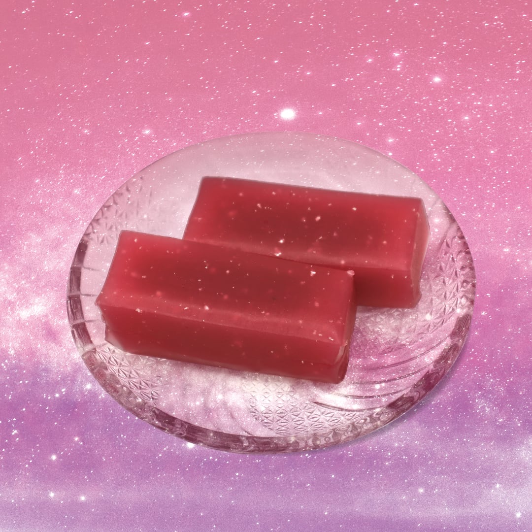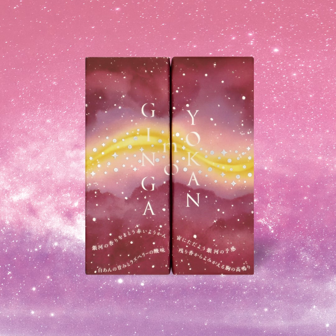 天の川銀河の中に存在する甘酸っぱい成分をラズベリーの香りで表現した宇宙でここだけのオリジナル羊羹です。