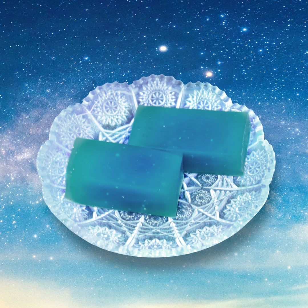 天の川のきらめきを閉じ込めた天色の羊羹は、銀河のどこかにある“星の予感”。