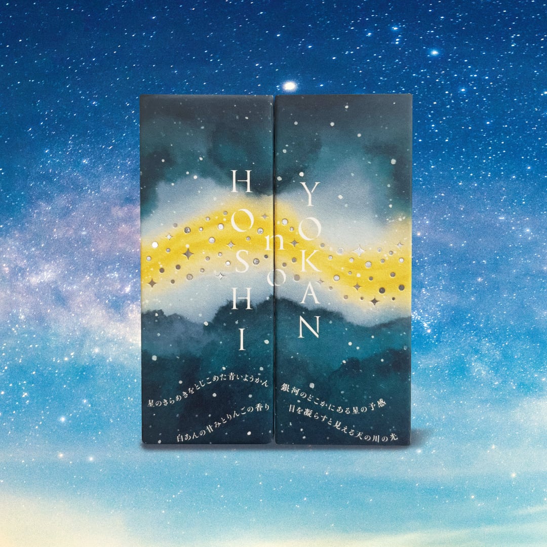 美しい青の中に星屑が輝く、宇宙でここだけのオリジナル羊羹です。
