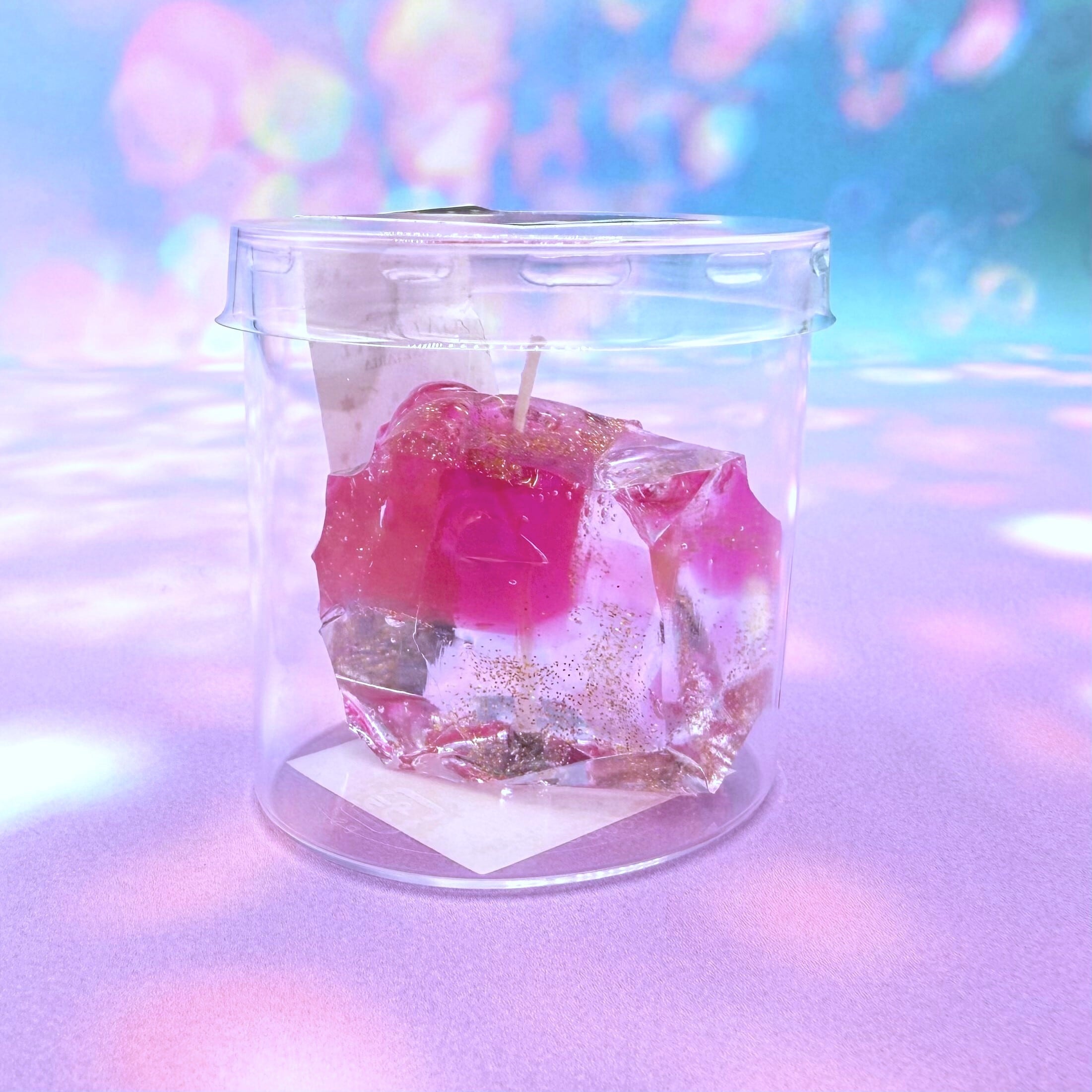 キャンドルの素材は流動パラフィンを使用。見た目はストーンの様ですが プルプルとゴムの様な感触で火を灯すと幻想的な光を放ちます。